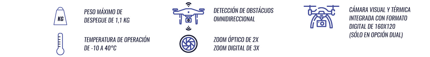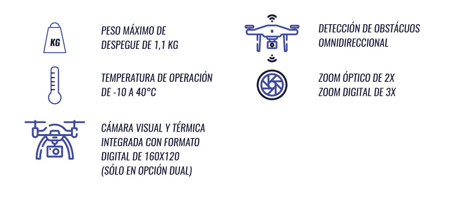 El DJI Mavic 2 Enterprise es un equipo pequeño, portátil y liviano, con cámara integrada. Es ideal para labores de inspección y tareas de rescate. En la opción DUAL posee una cámara térmica que permite hacer monitoreo térmico sobre infraestructura de energía, control de incendios o búsqueda de personas.